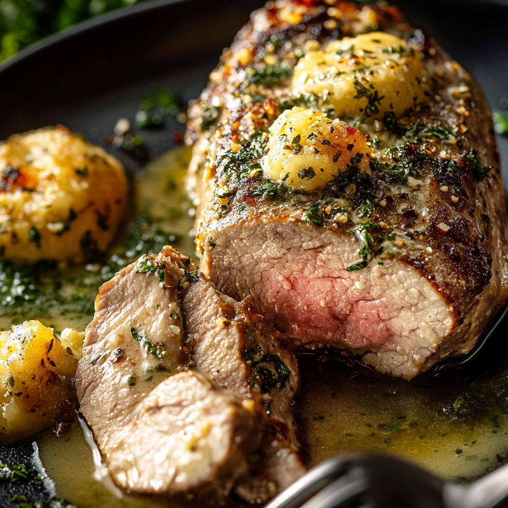 Keto-Schweinefilet mit Knoblauch-Kräuterbutter
