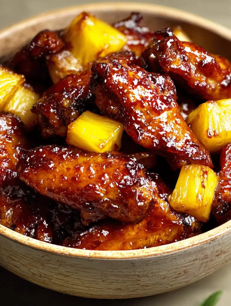 - Wings glasieren: Die gebackenen Wings aus dem Ofen holen, in eine große Schüssel geben und die warme Ananas-Glasur darüber gießen. Vorsichtig mischen, bis alle Wings gleichmäßig überzogen sind.