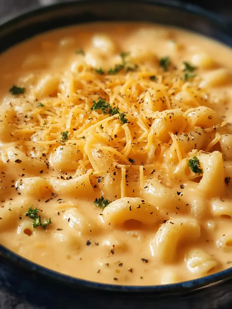 der unverwechselbare Geschmack von cremigem Mac & Cheese in Suppen‑Form — warm, beruhigend und doch voller Komfort‑Food‑Charakter. Diese Mac‑und‑Cheese‑Suppe verbindet zarte Nudeln mit einer sämigen Käsesauce, Gemüse‑Aromen und einer reichhaltigen Brühe. Perfekt für den Abend, wenn du Lust auf etwas Herzhaftes hast, das zugleich einfach und heimelig ist.
