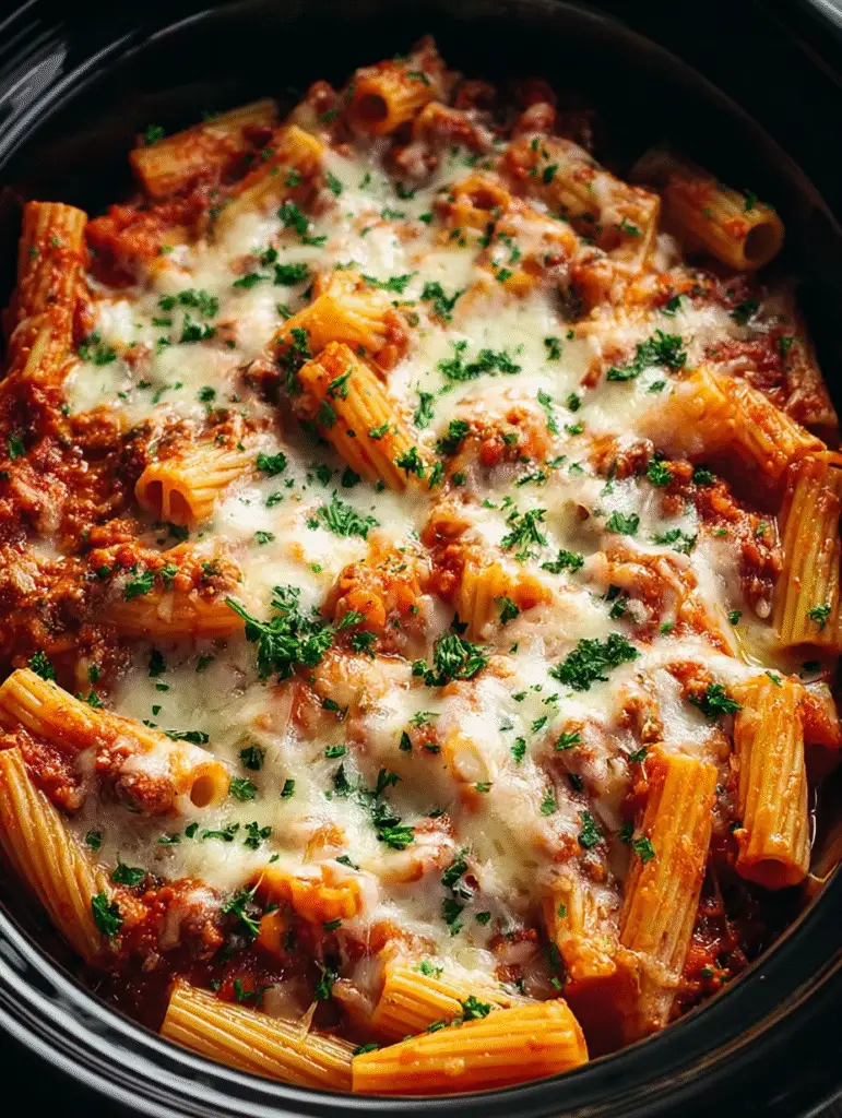 Stell dir eine reichhaltige Pasta-Schicht mit geschmolzenem Käse vor, in der der Teig bis zur perfekten Zartheit in würziger Tomatensauce gegart wurde — alles bequem im Slow Cooker. Dieses Gericht ist ideal, wenn du wenig Aufwand haben willst, aber trotzdem ein echtes Wohlfühl-Essen auf den Tisch bringen möchtest.