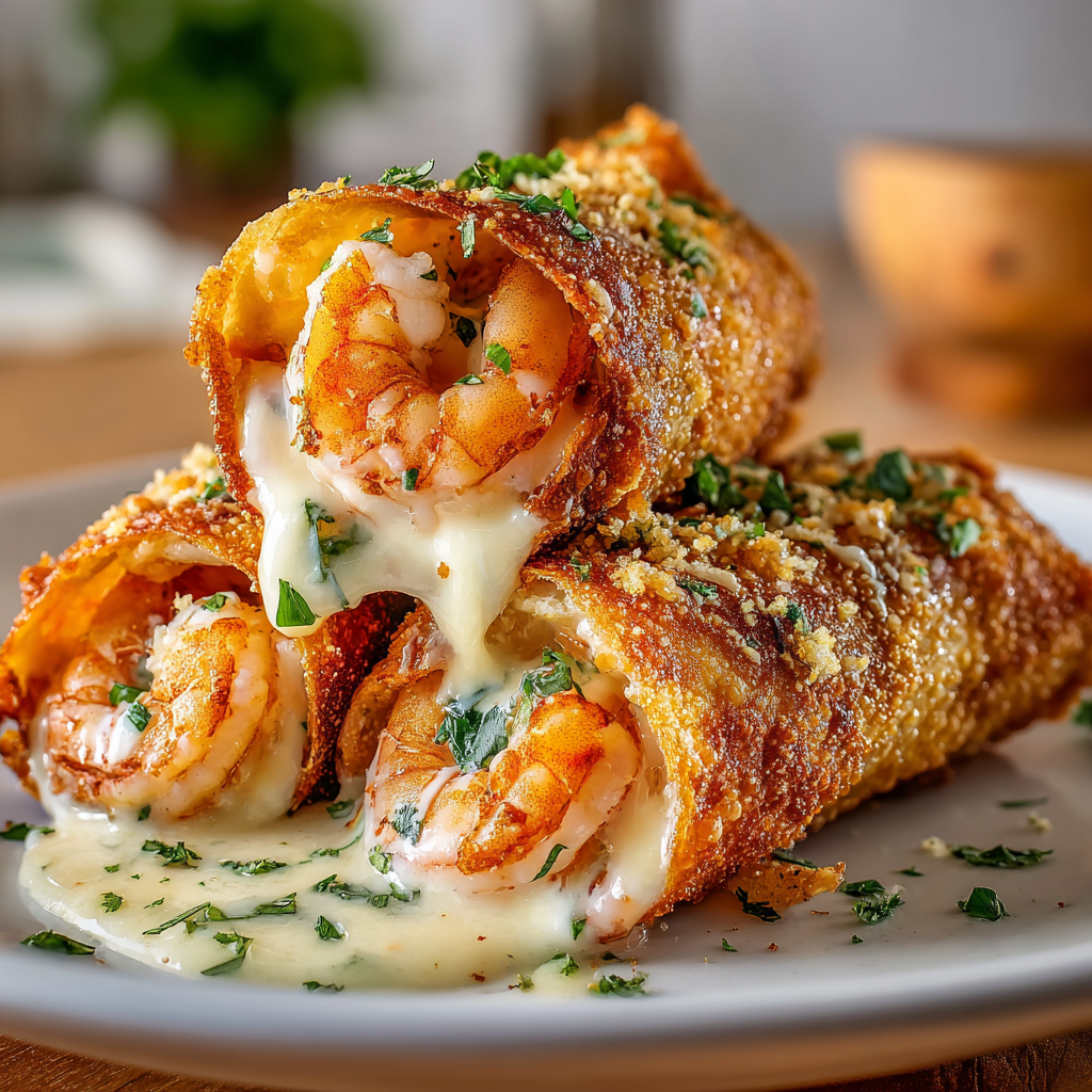 Diese unwiderstehlichen „Burrito Bites“ kombinieren zarte Garnelen in cremiger Alfredo-Sauce, umhüllt von zartem Tortilla-Teig — und außen knusprig paniert. Beim Frittieren entsteht eine goldbraune Kruste mit saftigem, käseüberzogenen Kern. Ein perfekter Snack für Partys, Filmabende oder einfach, wenn du Lust auf etwas Besonderes hast.