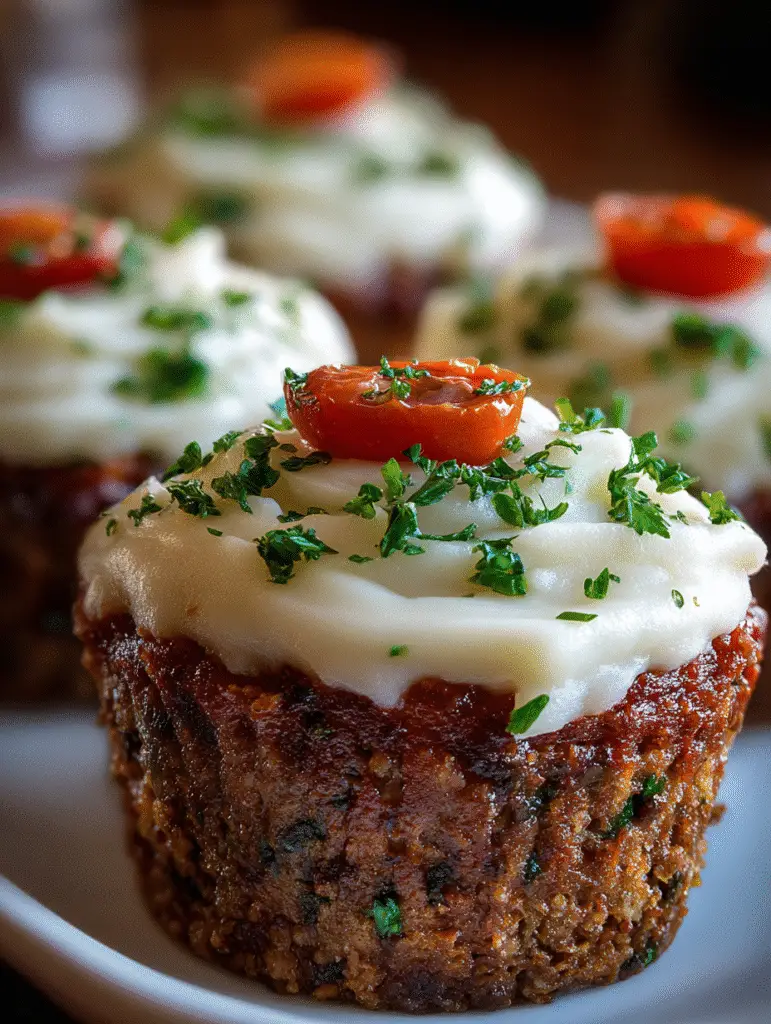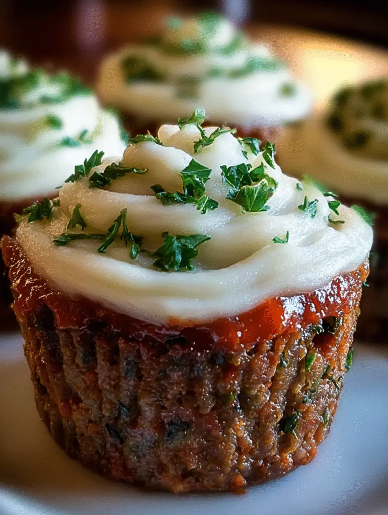 in kreativer Twist des klassischen Fleischlaibs: Diese kleinen „Cupcakes“ aus Hackfleisch werden in Muffin-Form gebacken und oben mit einer Creme aus Kartoffelpüree statt einem Frosting gekrönt – eine perfekte Kombination aus herzhaftem Dinner und verspielter Präsentation.