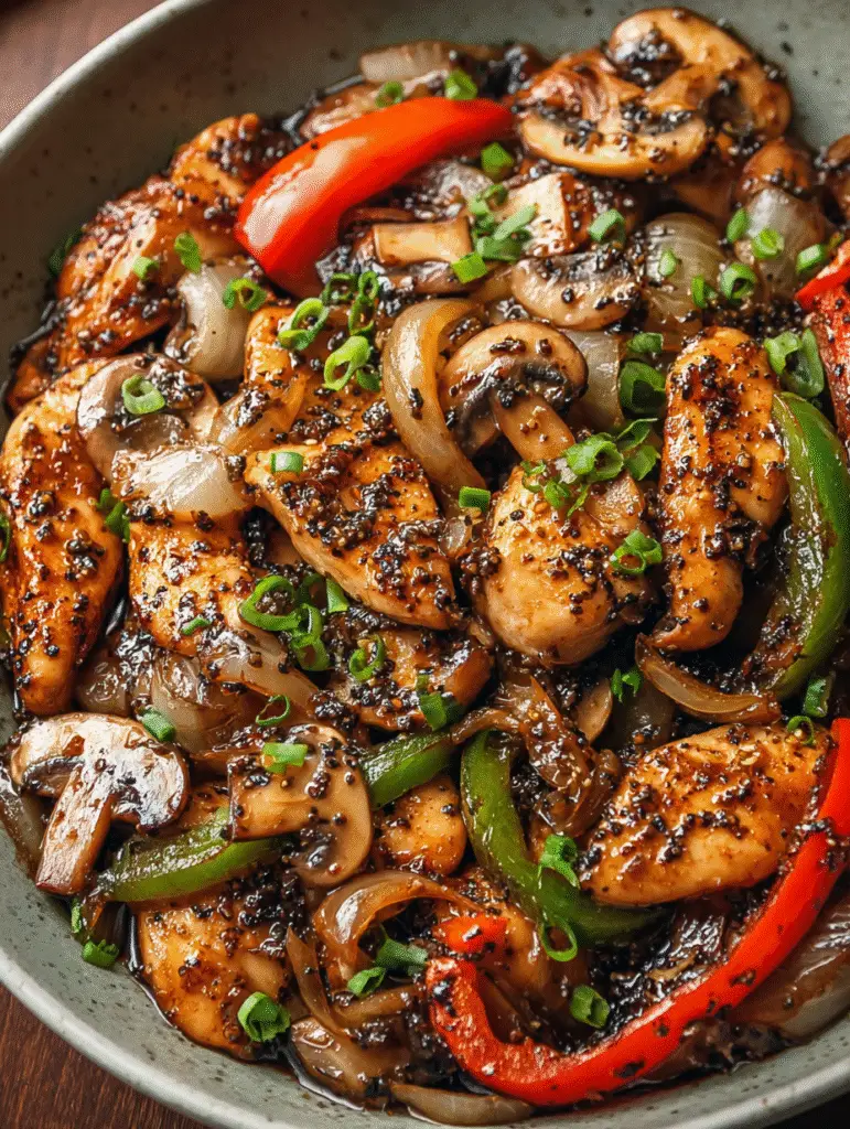 Dieses Gericht bringt Zartheit und Geschmack auf den Teller: Saftige Hähnchenstücke, kombiniert mit aromatischen Champignons und einer würzigen Schwarzpfeffer‐Sauce — serviert auf Reis oder mit Gemüse als Beilage. Ideal für ein unkompliziertes Abendessen mit angenehmer Würze.