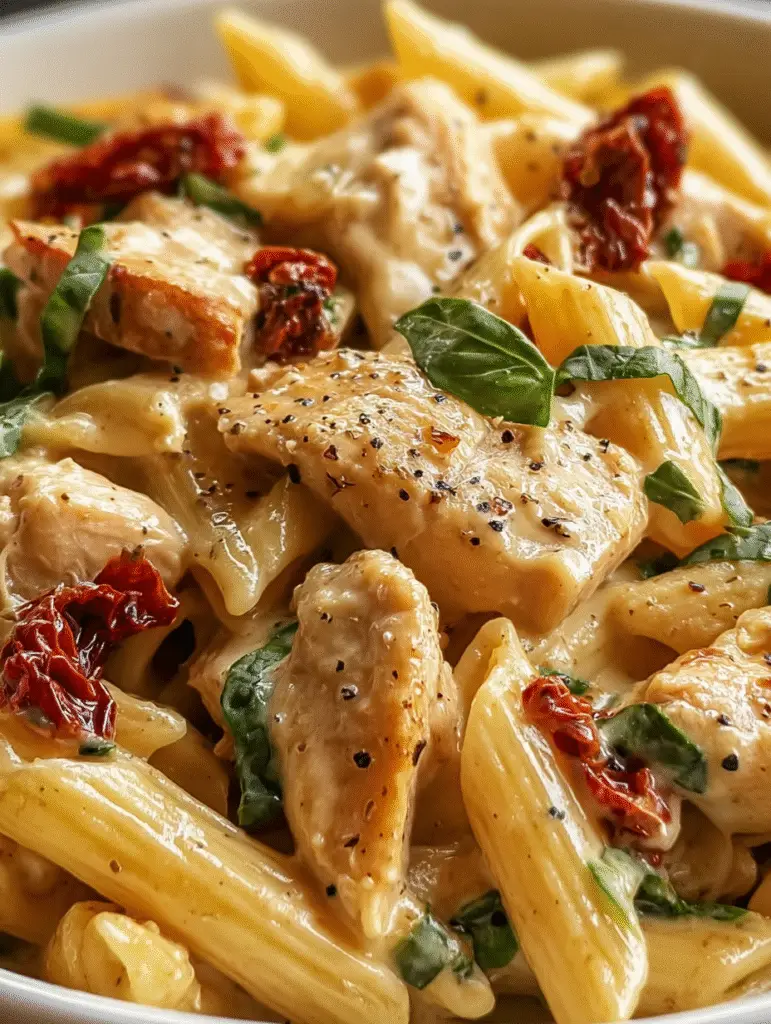 Saftig gebratenes Hähnchen trifft auf eine cremige Sauce aus Knoblauch, sonnengereiften Tomaten und Parmesan – verbunden mit perfekt al dente Pasta. Dieses Gericht überzeugt mit reichhaltigem Geschmack und unkomplizierter Zubereitung.