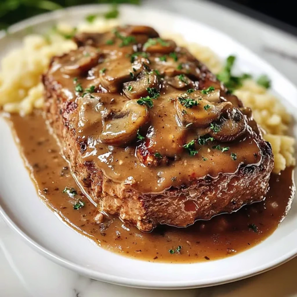 Klassischer Hackbraten trifft auf eine samtige Marsala-Wein-Champignon-Sauce – ein Hauch von Italien in jedem Bissen.