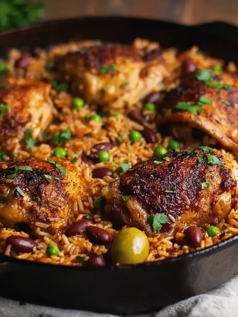 Ja – Du kannst die Marinade am Vortag machen und den Reis mit Bohnen vorbereiten; das Hähnchen dann frisch anbraten und alles zusammen garen für optimale Textur.