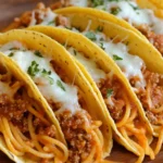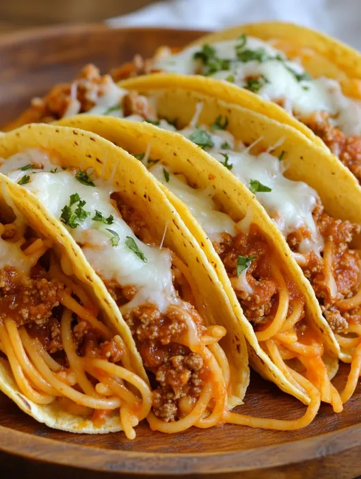 Diese Spaghetti Tacos sind das ultimative Fusion-Food: Knusprige Taco-Schalen, gefüllt mit würzigem Hackfleisch, Spaghetti und geschmolzenem Käse – verrückt, aber unglaublich lecker!