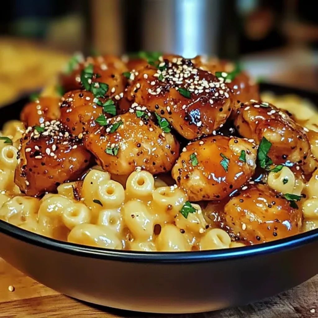 Zartes Hähnchen in süß-scharfer Honig-Pfeffer-Glasur trifft auf cremiges Mac and Cheese – ein Comfort-Food-Klassiker mit Wow-Effekt!
