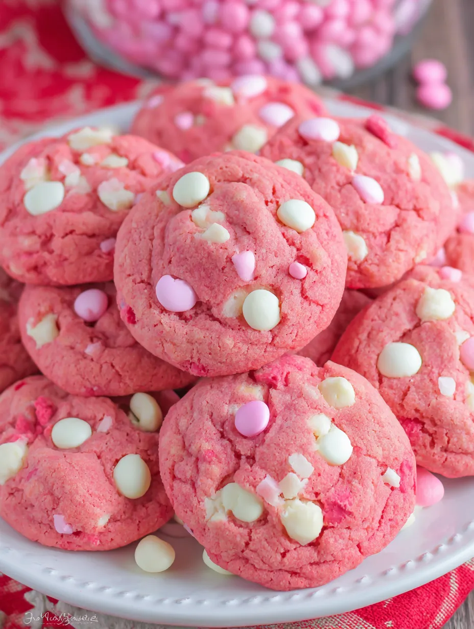 Diese Strawberry Cake Mix Cookies sind wunderbar weich, herrlich aromatisch und dazu noch richtig hübsch in zartem Rosa. Die Zubereitung ist super einfach, dank fertigem Erdbeer-Kuchenteig – und ein Geheimtipp sorgt für besonders saftige Kekse: Frischkäse! Perfekt für Valentinstag, Baby Showers, Geburtstage oder einfach so zwischendurch.
