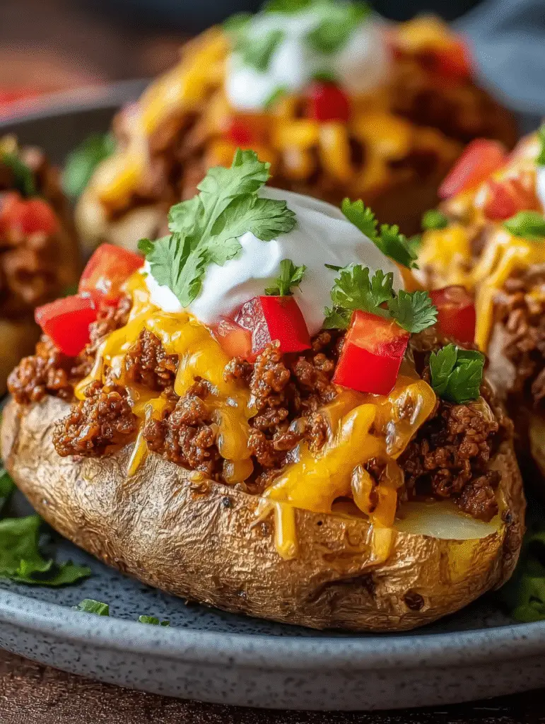 Diese herzhaften Ofenkartoffeln kombinieren knusprige Kartoffelschalen mit würzigem Taco-Hackfleisch, geschmolzenem Käse, frischer Sour Cream und bunten Toppings. Ein Gericht, das Komfortessen und Fiesta-Vibes vereint – perfekt für ein entspanntes Familienessen oder einen geselligen Abend.