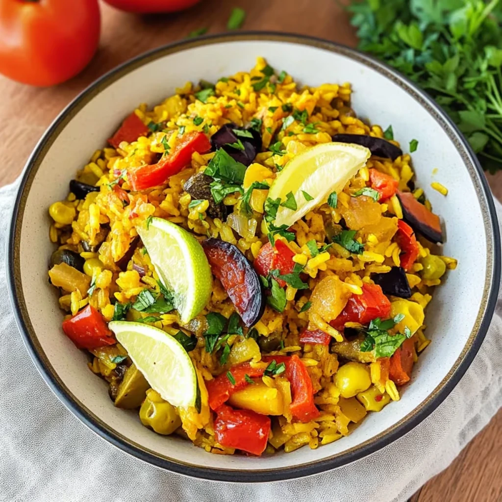 Wenn du nach einem einfachen, farbenfrohen und trotzdem beeindruckenden Gericht suchst, das in weniger als einer Stunde auf dem Tisch steht, dann ist diese vegetarische Paella genau das Richtige! Diese pflanzenbasierte Variante des spanischen Klassikers ist vollgepackt mit frischem Gemüse, aromatischem Safranreis und bringt echtes Urlaubsfeeling in deine Küche – ganz ohne Fleisch oder Fisch.