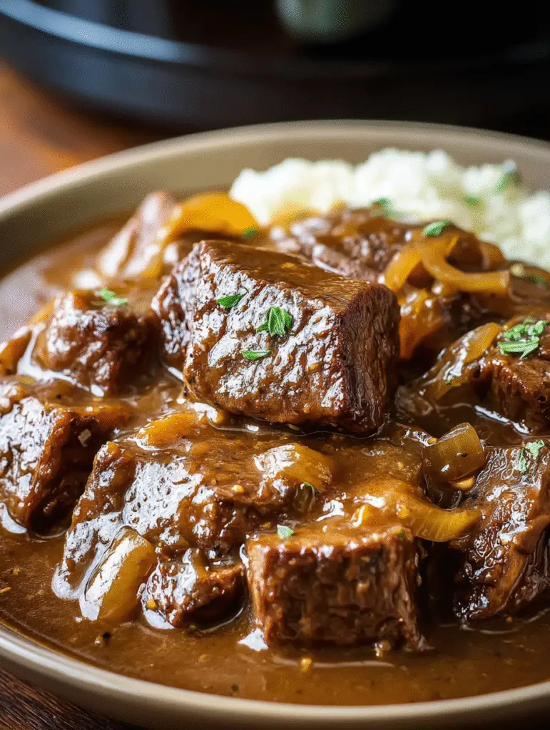 - Vorbereitung der Basis: Die Zwiebel auf dem Boden der Crock Pot‑Schale verteilen. Das Cubed Steak darauf legen und mit Salz & Pfeffer würzen.